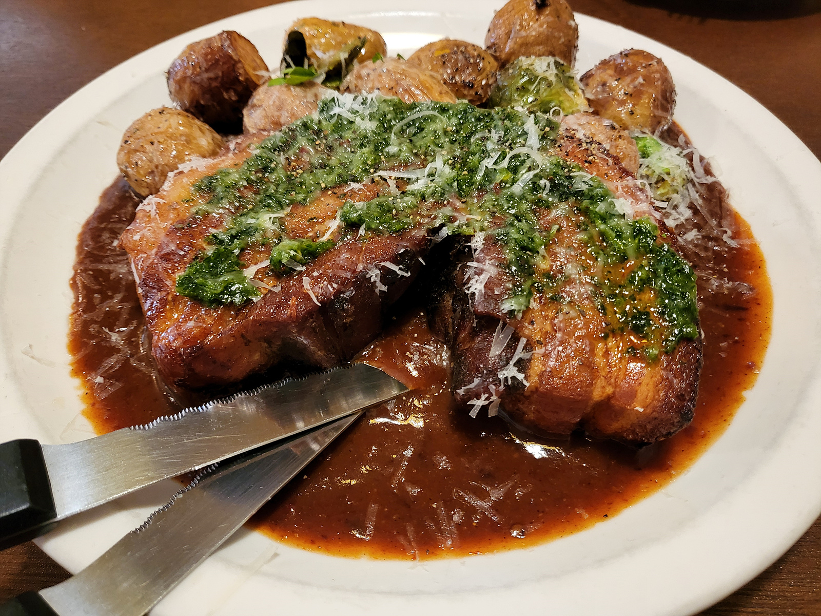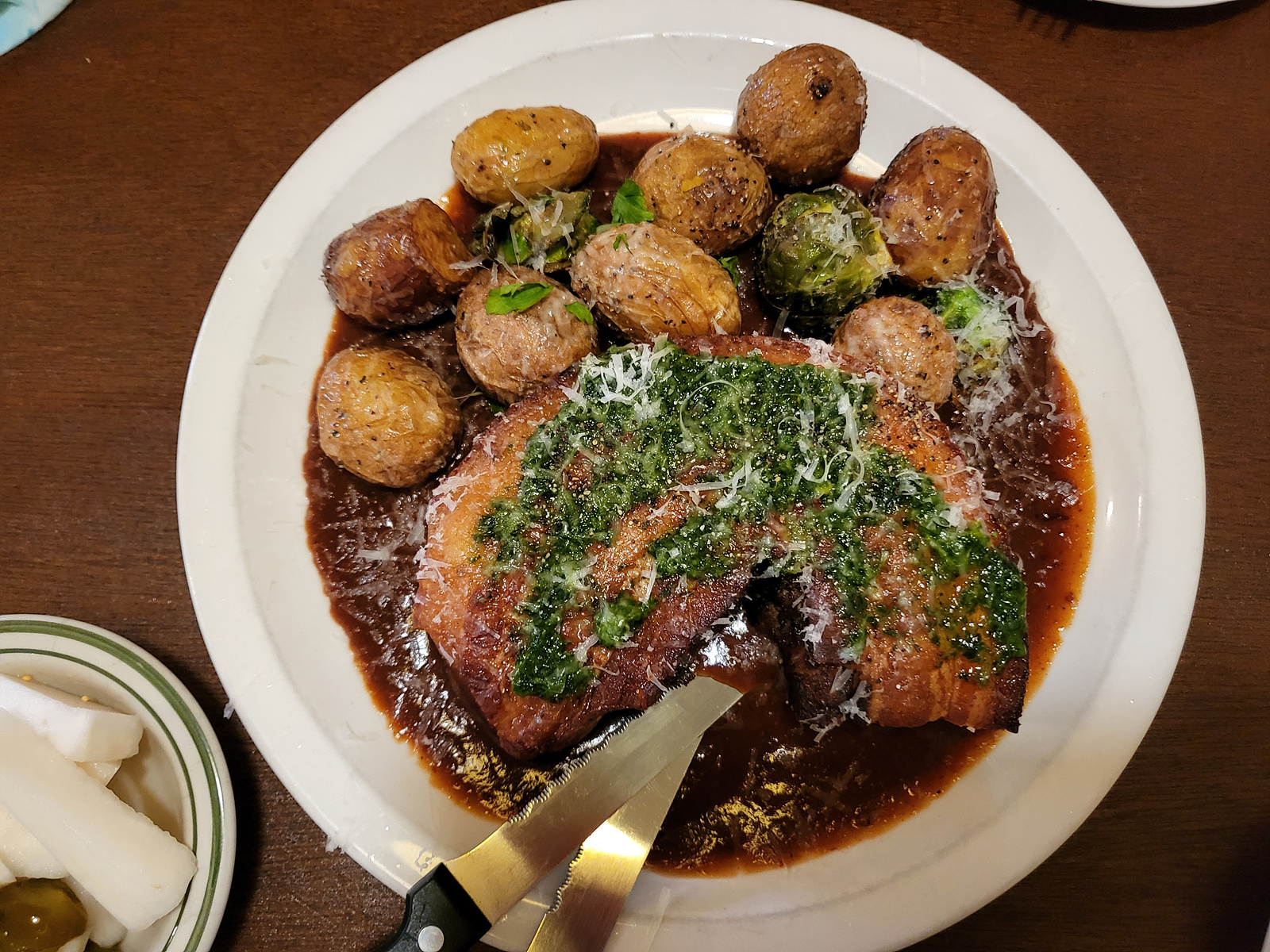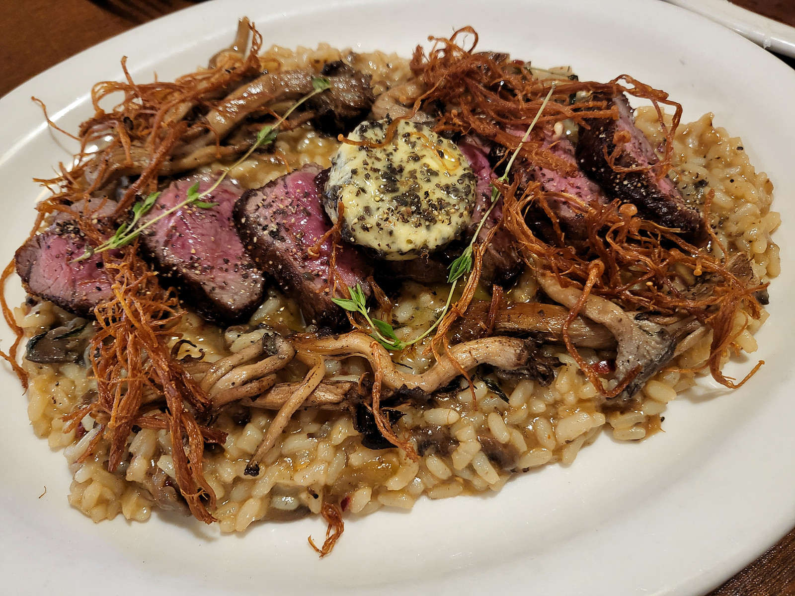 오겹살 포르게따, 스테이크, 트러플버터 & 버섯 리조또